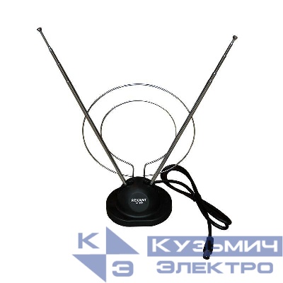 Товар Антенна ТВ комнатная RX-100 телескопич. на подставке с кольцом VHF; UHF 47-860MHz REXANT 34-0100 доступен с доставкой по г. Санкт-Петербург, Ленинградской области и России, или самовывозом.