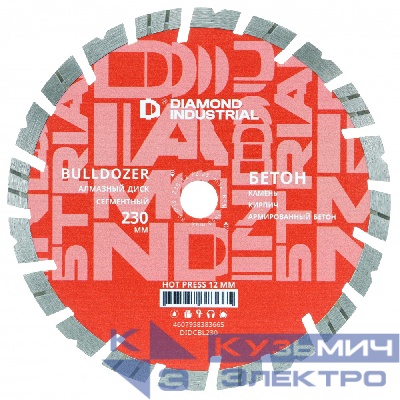 7356 | Diamond Industrial Диск алмазный сегментный по армированному бетону, кирпичу, камню 230x12x22,23 мм Bulldozer Hot Press 12 мм DIDCBL230 Diamond Industrial