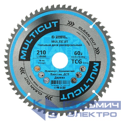 6911 | Diamond Industrial Диск пильный по мультиматериалам 210x30 мм Z=60 TCG MultiCut Diamond Industrial