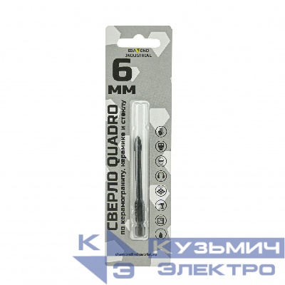 2246 | Diamond Industrial Сверло по керамограниту, стеклу и керамике квадро 6 мм Diamond Industrial
