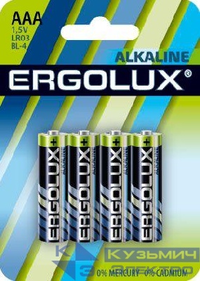 11744 | Элемент питания алкалиновый AAA/LR03 1.5В Alkaline BL-4 (блист.4шт) Ergolux