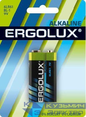11753 | Элемент питания алкалиновый "крона" 6LR61 9В Alkaline BL-1 (блист.1шт) Ergolux
