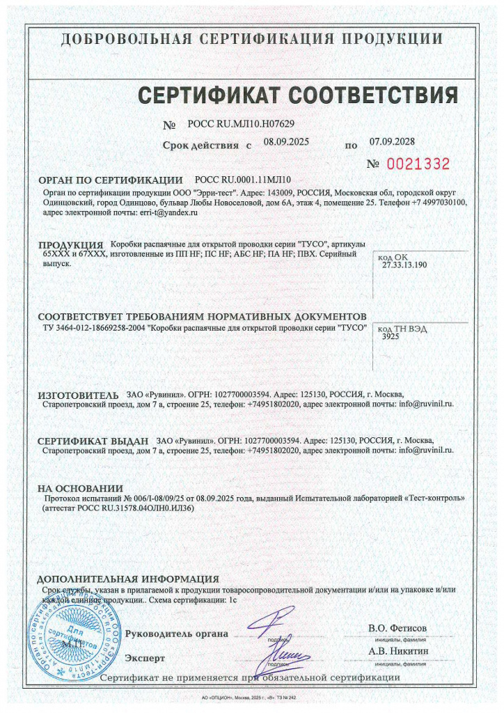 67010МБ | Коробка распаячная для ОП 60х40мм бел. Ruvinil