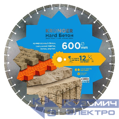 1609 | Kronger Алмазный диск по армированному бетону 600 мм Hard Бетон Laser Kronger