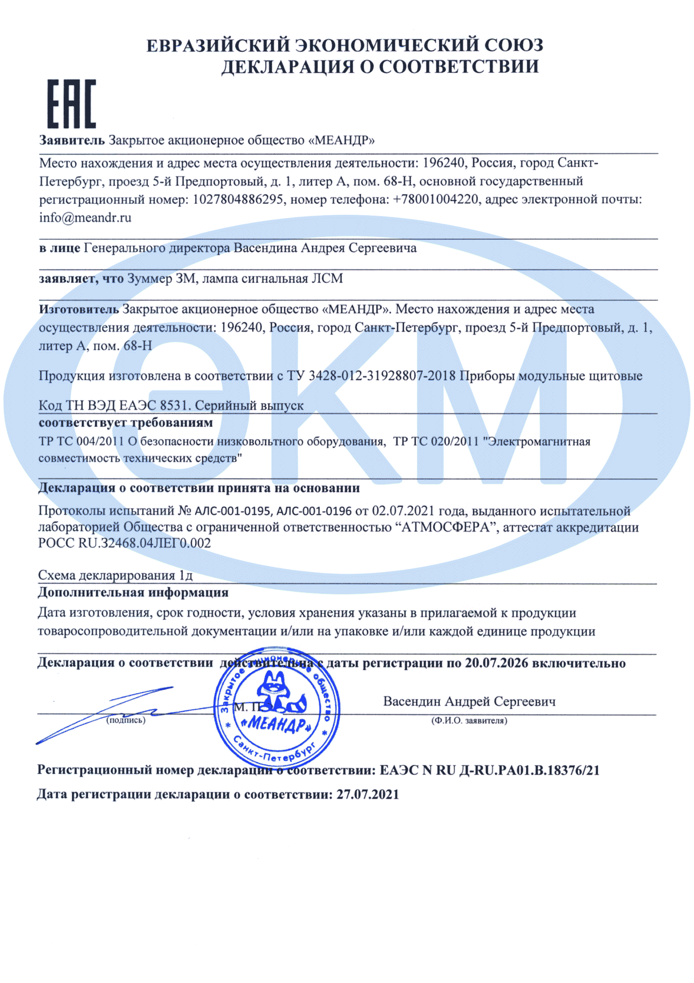A8302-19911267 | Лампа сигнальная тройная ЛСМ-3 УХЛ4 230В AC/DC желт./зел./красн. Меандр