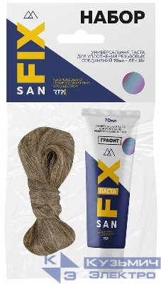 Товар Набор монтажный универсальная паста+лен (70мл+15гр) графит SANFIX RTP 40714 доступен с доставкой по г. Санкт-Петербург, Ленинградской области и России, или самовывозом.