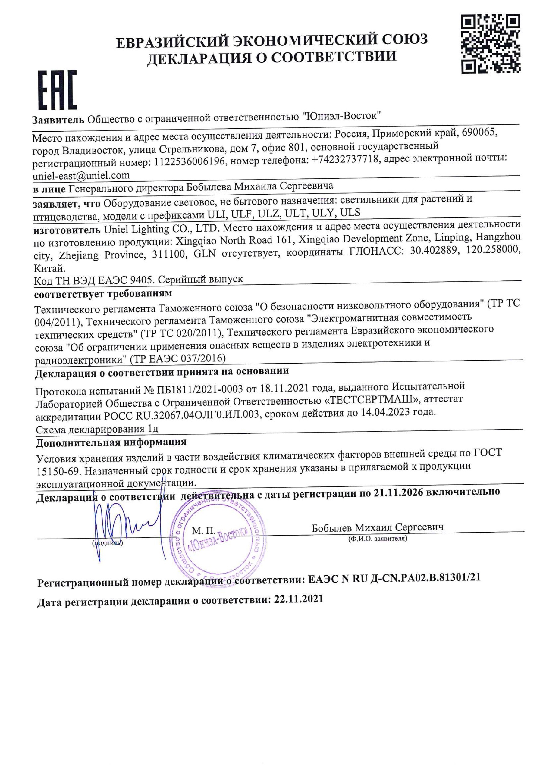 UL-00010384 | Прожектор светодиодный ULF-P42-50W/SPBR IP65 180-260V BLACK 50Вт 180-260В для растений спектр для рассады и досвечивания в период роста черн. Uniel