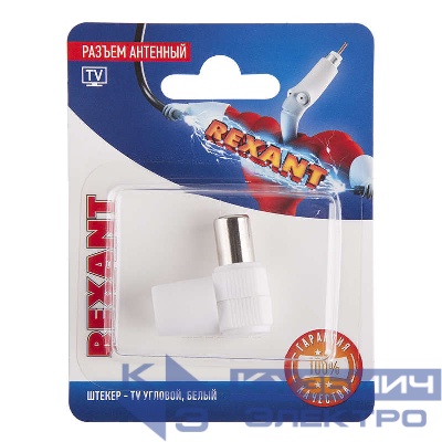 06-0014-A | Разъем антенный на кабель штекер-TV угловой бел. блист. Rexant