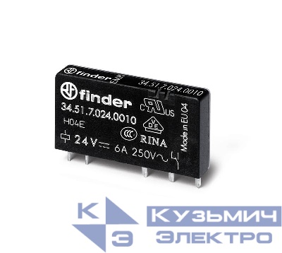 Товар Реле ультратонкое 1CO 6А кат. 24В DC RTII FINDER 345170240010 доступен с доставкой по г. Санкт-Петербург, Ленинградской области и России, или самовывозом.