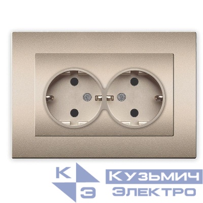 A0128-Br | Розетка 2-м СП Афина 16А IP20 с заземл. в сборе шампань Universal
