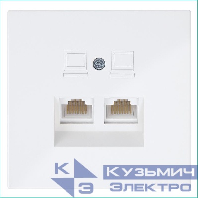 FD6106W | Розетка компьютерная 2-м СП RJ45 FD кат.5E с накладкой механизм бел. глянцевый Jasmart