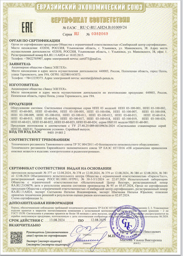 Светильник предназначен для освещения помещений площадью до 3кв.м