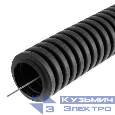 PR01.0148 | Труба гофрированная ПВХ легкая d25мм с протяжкой 350 Н черн. (уп.25м) Промрукав