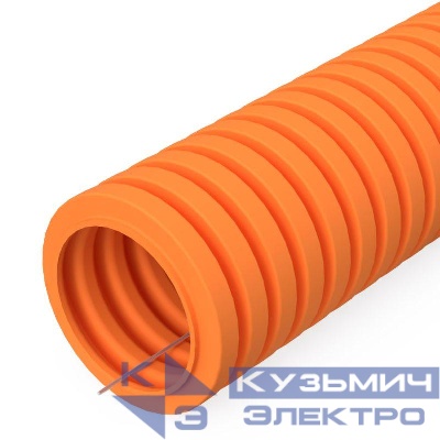PR01.0133 | Труба гофрированная ПВХ легкая d32мм с протяжкой 350 Н оранж. (уп.25м) Промрукав
