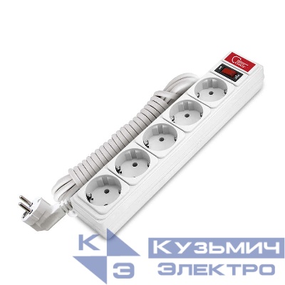 1327 | Удлинитель с сетевым фильтром 5х5м 10А IP21 ПВС 3х0.75 бел. Союз