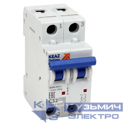 341934 | Выключатель автоматический модульный 2п D 20А OptiDin ВМ63-2D20-15-УХЛ3 КЭАЗ