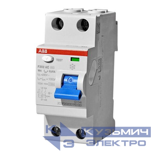 Товар Выключатель дифференциального тока (УЗО) 2п 16А 10мА тип AC F202 ABB 2CSF202001R0160 доступен с доставкой по г. Санкт-Петербург, Ленинградской области и России, или самовывозом.